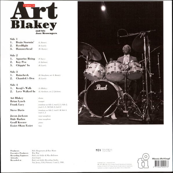 Lançado pelo lendário selo de jazz holandês Timeless Records, Chippin’ In apresenta dez faixas sublimes gravadas no Rudy van Gelder’s Recording Studio em fevereiro de 1990.