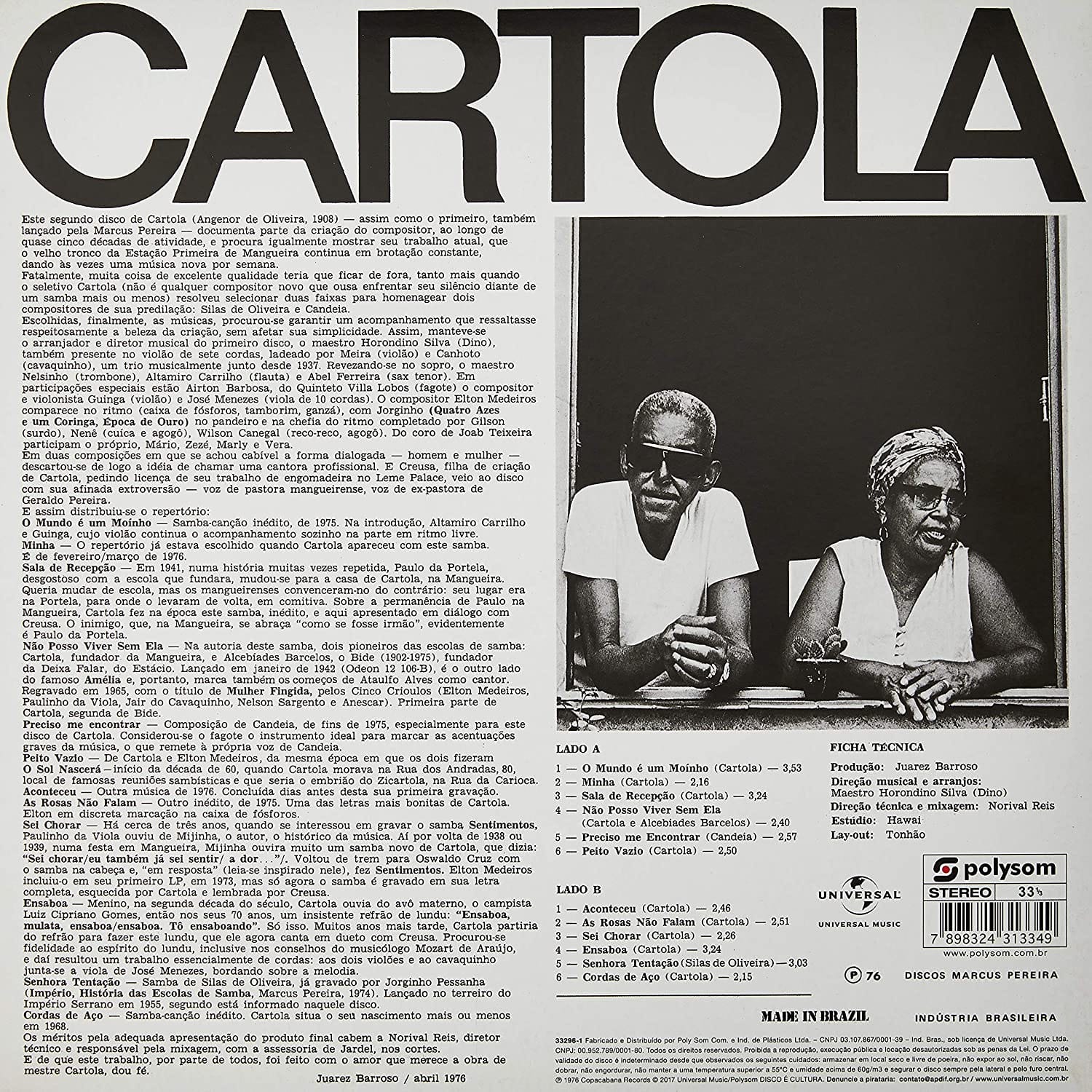 Tendo lançado seu primeiro álbum, homônimo em 1974, aos 66 anos, Cartola mostrava porque já há muito tempo era considerado um dos maiores representantes do samba.