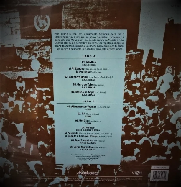 Pela primeira vez, em documento histórico para fãs e colecionadores, a íntegra do show “Direitos Humanos no Banquete dos Mendigos”, produzido por Jards Macalé e Xico Chaves em 10 de dezembro de 1973. Os registros integrais saem dos tapes originais, guardados por Macalé por 40 anos – até serem finalmente revisitados para este projeto único.