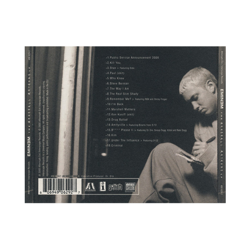 The Marshall Mathers LP é o terceiro álbum de estúdio de Eminem, lançado em 2000 com produção de Dr. Dre. Com letras afiadas, produção impecável e uma abordagem provocadora, o disco não apenas consolidou o rapper como um dos maiores nomes do gênero, mas também gerou debates intensos sobre liberdade de expressão, censura e identidade cultural. Traz os sucessos “The Real Slim Shady”, “The Way I Am” e “Stan”. Este último, uma colaboração com a cantora britânica Dido, tornou-se um dos maiores legados culturais do álbum, dando origem ao termo “stan” — hoje usado para descrever fãs extremamente devotos. Estreou no topo da Billboard 200, vendeu 1,78 milhão de cópias na primeira semana e ultrapassou 25 milhões mundialmente. Vencedor do Grammy de Melhor Álbum de Rap, é considerado um dos maiores discos da história do hip-hop.