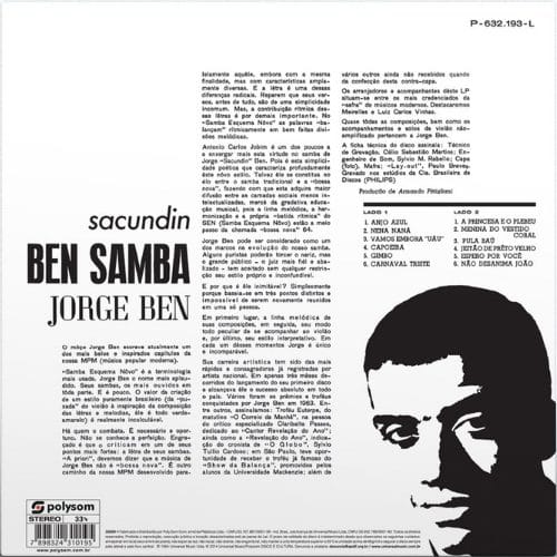 Lançado em 1964, “Sacundin Ben Samba” é o segundo álbum de Jorge Ben Jor.