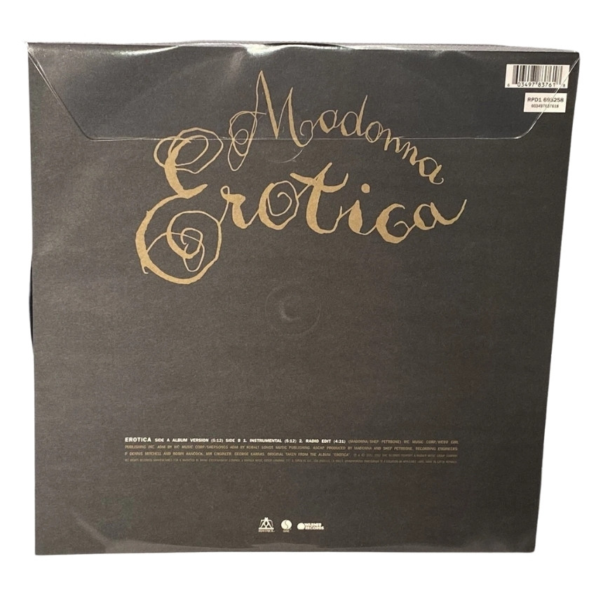 Lançado em 1992, Erotica é o quinto álbum de estúdio de Madonna e um marco audacioso em sua carreira, misturando música dançante com temas provocativos e sensuais. O disco estreou no topo das paradas mundiais e ultrapassou seis milhões de cópias vendidas, consolidando-se como uma das obras mais ousadas do pop. Em comemoração aos 30 anos do álbum, foi lançado um picture vinyl com a faixa-título, cuja edição original havia sido cancelada em 1992 por causa de sua imagem considerada explícita. Com apenas poucas cópias sobreviventes na época, o item se tornou um símbolo cult entre os fãs. Agora, após três décadas, essa edição rara ressurge oficialmente, mantendo viva a provocação e a estética marcante de Madonna.