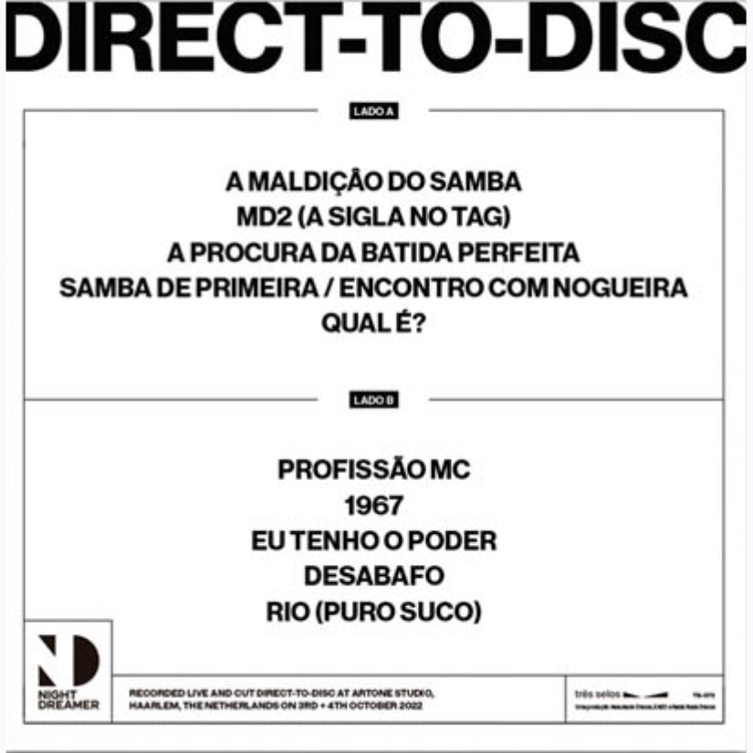 O álbum Direct-to-Disc, de Marcelo D2 & SambaDrive, celebra os 25 anos de carreira do artista. Gravado ao vivo no renomado Artone Studio, na Holanda, o disco traduz a fusão única entre samba, jazz e hip-hop que marca o trabalho do grupo. O projeto nasceu das improvisações durante passagens de som e evoluiu para turnês internacionais, passando por cidades como Londres, Nova York, Paris e Berlim. Sob a produção de Mario Caldato Jr., o registro apresenta 10 faixas da discografia de Marcelo D2 em versões vibrantes e espontâneas, sem edições, capturando a essência do momento.