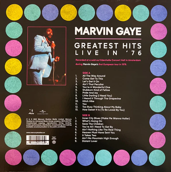 A apresentação de Marvin Gaye em 1976 no Jaap Edenhal, em Amsterdã, foi lançado em vinil em 27 de janeiro de 2023 como Greatest Hits Live in ’76.