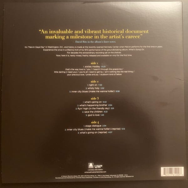 Gravado originalmente em 1972 no “Marvin Gaye Day” em Washington, DC, cidade natal de Gaye, um ano após o lançamento de seu álbum inovador.