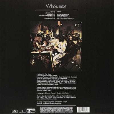Entre as faixas estão três das cançõe mais populares da banda: ‘Baba O’Riley’, com seu riff em loop feito no sintetizador (Townshend foi um dos primeiros músicos a utilizar sintetizadores e samplers no rock), a subversiva e multicamada ‘Behind Blue Eyes’, e aquela que se tornou obrigatória por longo tempo nos shows ao vivo do grupo, ‘Won’t Get Fooled Again’.