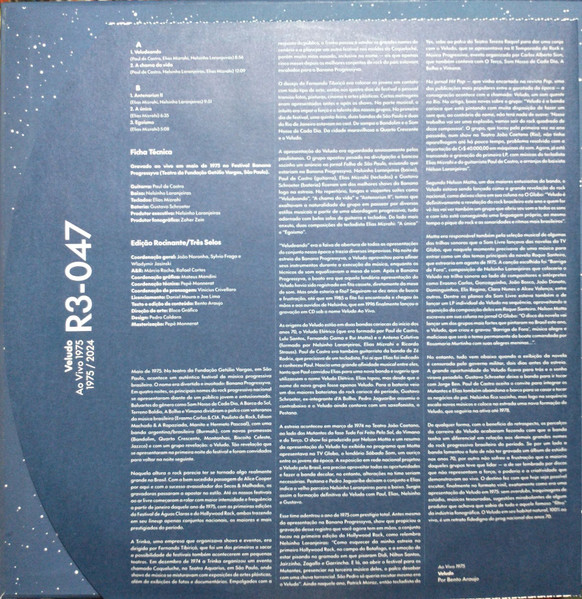 Com arranjos ousados, longas passagens instrumentais e letras cheias de poesia e reflexão, o álbum revela o encontro entre técnica e emoção — algo raro e mágico. Faixas como “A Chama da Vida” e “Egoísmo” mostram o domínio da banda sobre os climas e dinâmicas, alternando entre o peso do rock e a delicadeza das harmonias progressivas. A reedição da Três Selos e Rocinante, lançada em 2024, faz justiça a essa obra. O LP vem em capa dura com papel brilhante, inclui pôster, OBI e encarte com texto de Bento Araújo, celebrando uma das gravações ao vivo mais fascinantes e raras do rock nacional. Um item essencial para colecionadores e amantes do som psicodélico e progressivo dos anos 70.